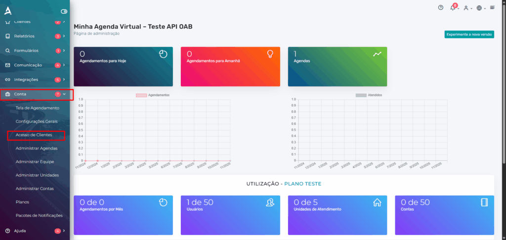 1. No eAgenda, vá em Conta → Acesso de Clientes