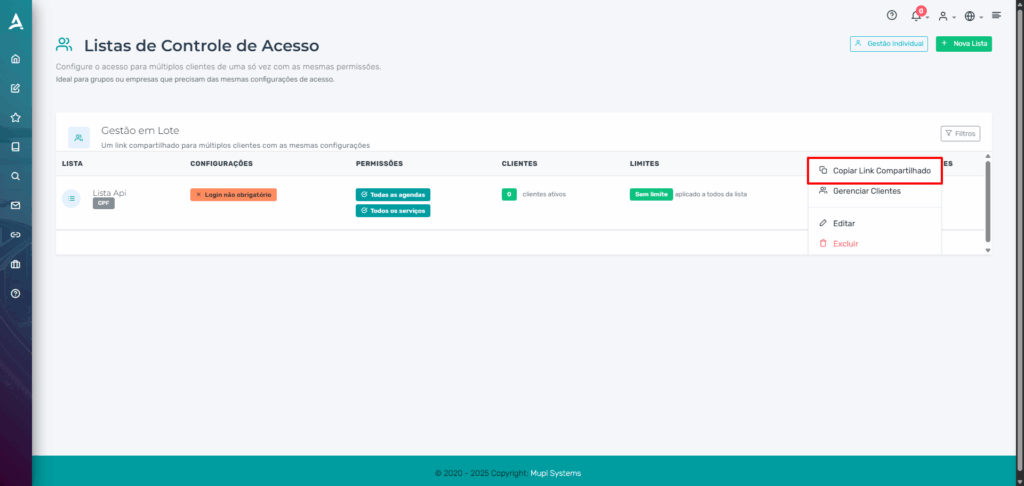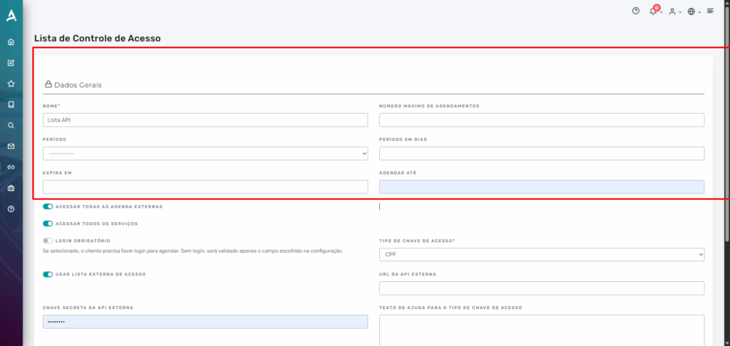 O eAgenda permite validar, de forma automática, se um cliente está autorizado a realizar um agendamento utilizando uma Lista de Acesso conectada a uma API externa.